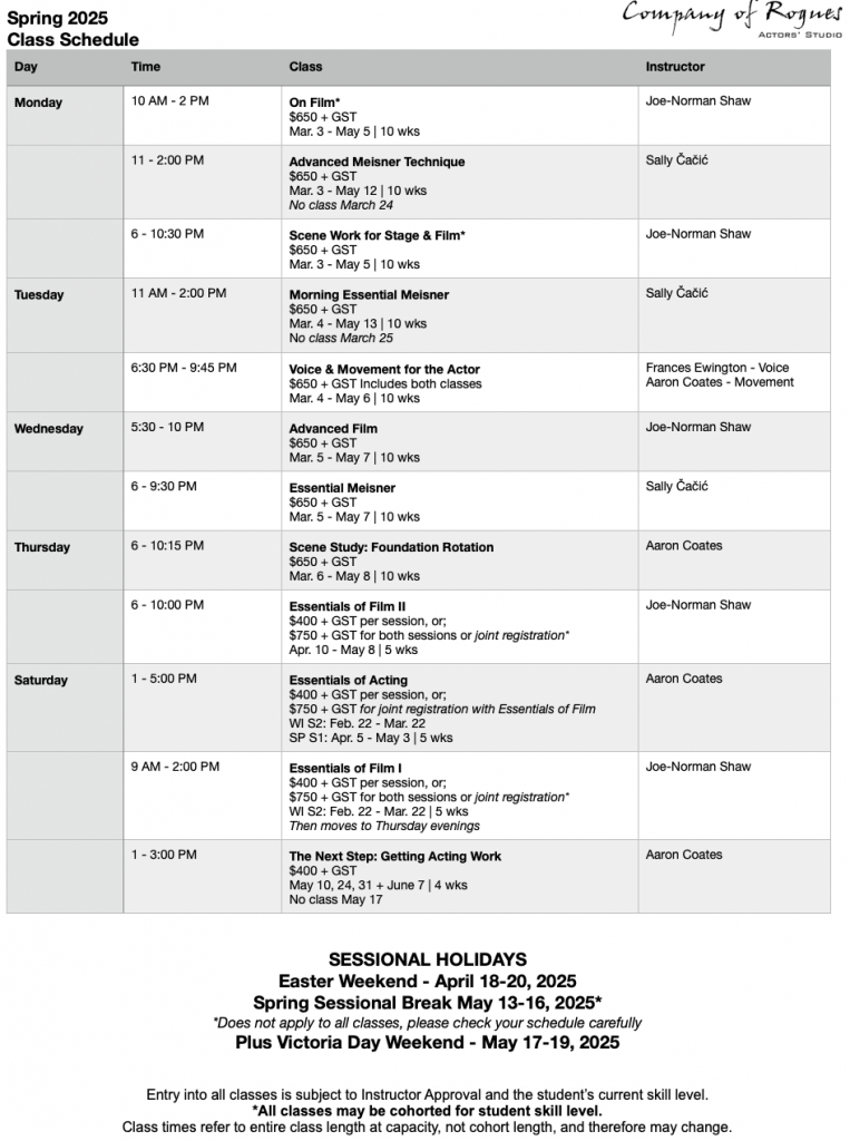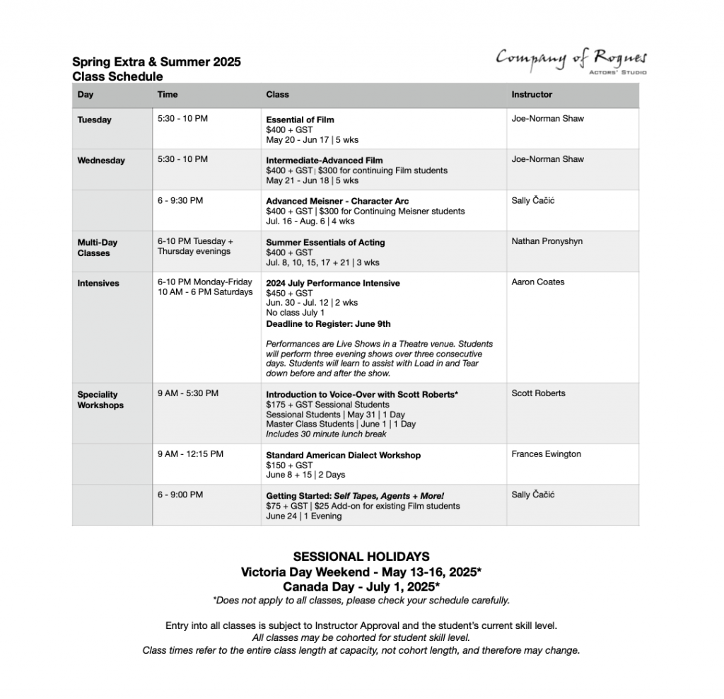Strong ties to the professional Film and Theatre communities in Calgary and Vancouver